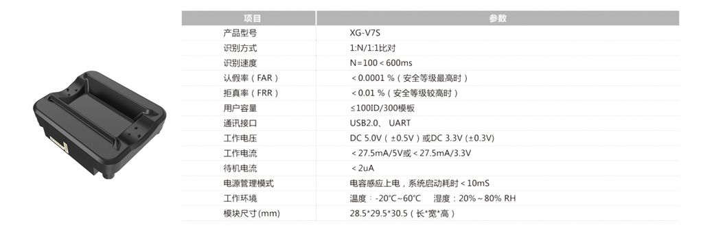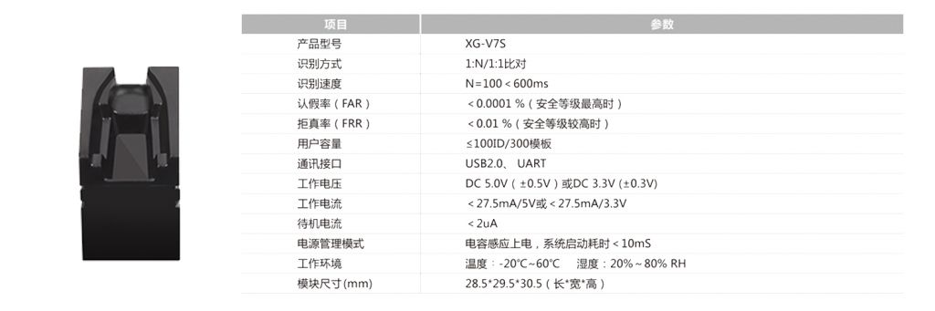 2014年,第一款XG-V7推出,當時算是指靜脈行內(nèi),體積最小的模組。我們解決了模組功耗和協(xié)議的兼容,適應了當時門鎖的應用需求。指紋鎖還是光學指紋模塊主導市場 ,指靜脈模組體積大的缺陷還不是很明顯。但模組體積大,結(jié)構兼容局限,不利于產(chǎn)品嵌入和產(chǎn)品外觀設計,使得指靜脈智能鎖產(chǎn)品系列延伸受到限制。且民眾對指靜脈技術認知還普遍偏低,用戶使用的習慣,造成前期產(chǎn)品教育成本高,使得指靜脈的市場價值并沒得到充分體現(xiàn)。