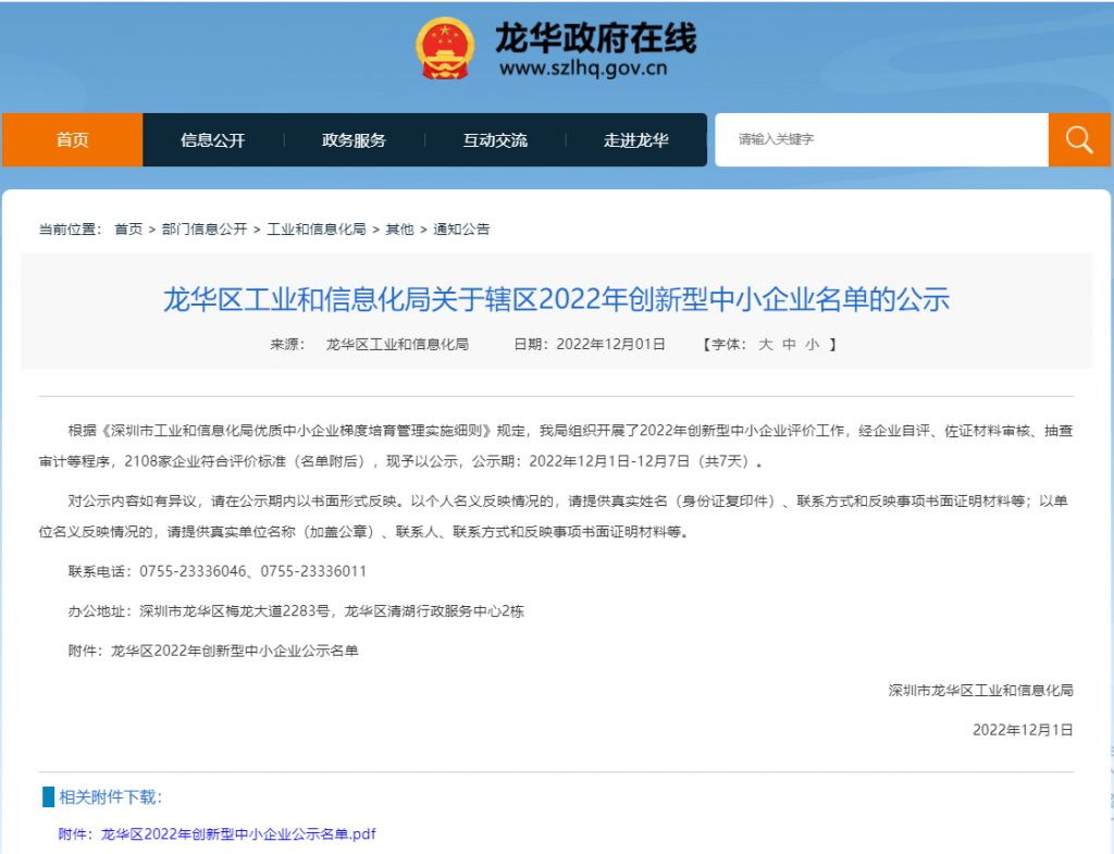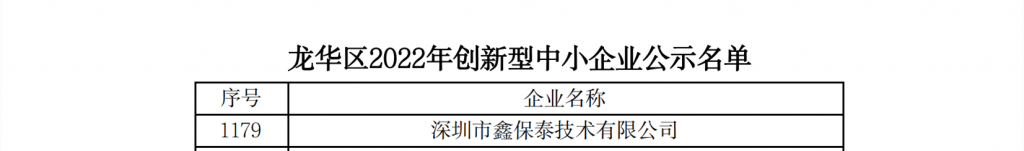 近日,深圳市工業(yè)和信息化局發(fā)布關于“2022年創(chuàng)新型中小企業(yè)”認定名單。深圳市鑫保泰技術有限公司經(jīng)過企業(yè)自評、佐證材料審核、抽查審計等程序,榮登榜單!
