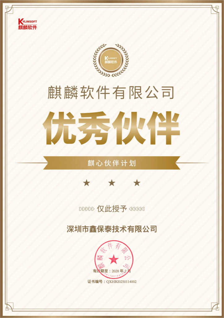 麒麟軟件作為國內(nèi)操作系統(tǒng)領(lǐng)域的領(lǐng)軍企業(yè),其 “麒心伙伴” 計(jì)劃旨在以銀河麒麟操作系統(tǒng)為基石,匯聚眾多優(yōu)秀合作伙伴,共同構(gòu)建國產(chǎn)軟硬件生態(tài)體系,推動(dòng)信息技術(shù)產(chǎn)業(yè)的自主可控與創(chuàng)新發(fā)展。能夠成為麒麟軟件的優(yōu)秀伙伴,意味著我們在技術(shù)研發(fā)、產(chǎn)品適配、市場拓展等方面均達(dá)到了行業(yè)領(lǐng)先水平。